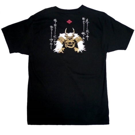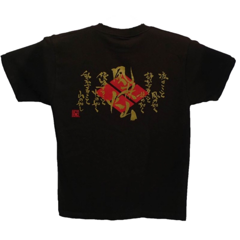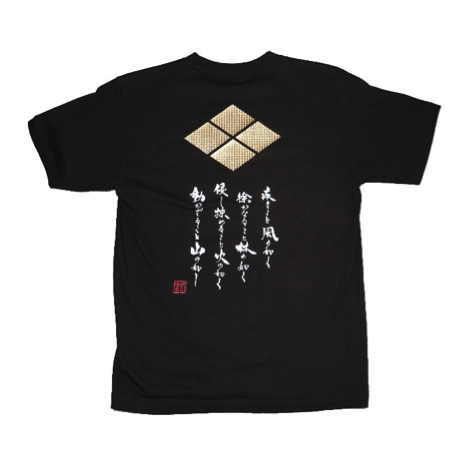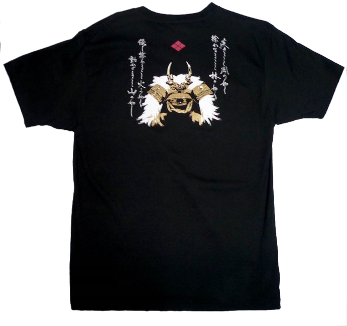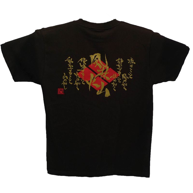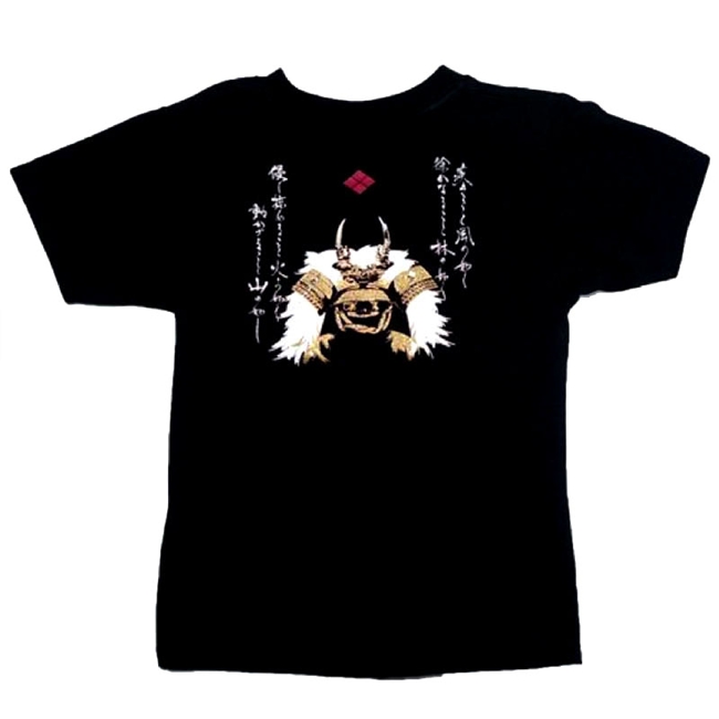 かぶとやオリジナルデザインです。中心に武田信玄兜と、風林火山の文字がデザインされています。商品番号:tsyac-001b商品名:風林火山兜オリジナル子供Tシャツ当店通常価格:1,900円 (税込)